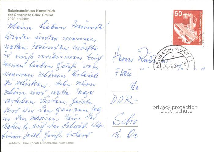 72571686 alte Postkarte Heubach Wuerttemberg Naturfreundehaus Himmelreich postalisch gelaufen Erhaltung siehe scans [LiesaD40] KatCode: 11110008136028