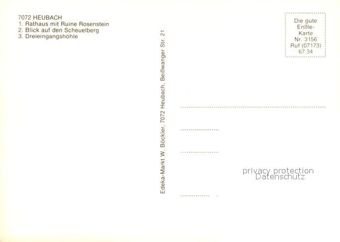 73227562 Heubach Wuerttemberg Rathaus mit Ruine Rosenstein Scheuelberg Dreieingangshoehle postalisch nicht gelaufen Erhaltung siehe scans [WerneD78] KatCode: 11110008136028