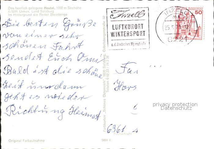 72506190 alte Postkarte Heutal Unken Reiter Steinberge postalisch gelaufen Erhaltung siehe scans KatCode: 11390322050623