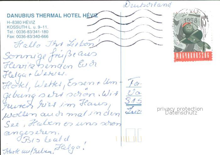 old postcard Heviz Danubius Thermal Hotel postalisch gelaufen Erhaltung siehe scans