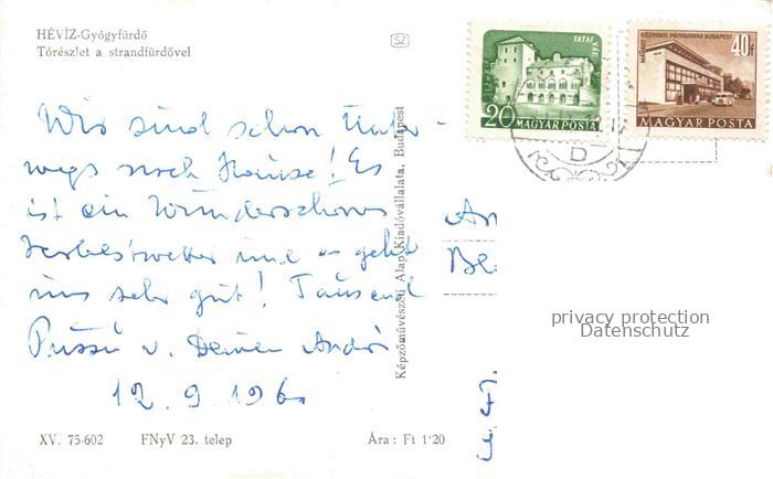 Heviz Hevizgyogfuerdoe HU Toreszlet a strandfuerdoevel postalisch gelaufen Erhaltung siehe scans [IrynaD87] alte Postkarte Iryn Katcode 11550