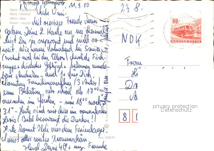 old postcard Heviz Thermalbad postalisch gelaufen Erhaltung siehe scans [LiesaD40]