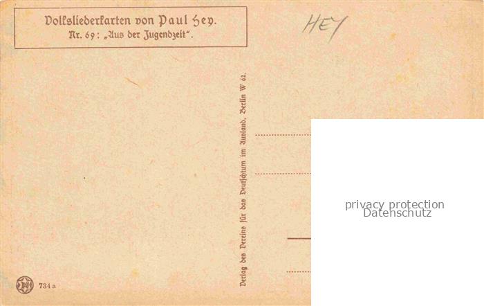 74084302 HEY Paul (1867-1952) Kuenstlerkarte Nr. Aus der Jugendzeit postalisch nicht gelaufen Erhaltung siehe scans [IrynaD87] KatCode: 22240000001900