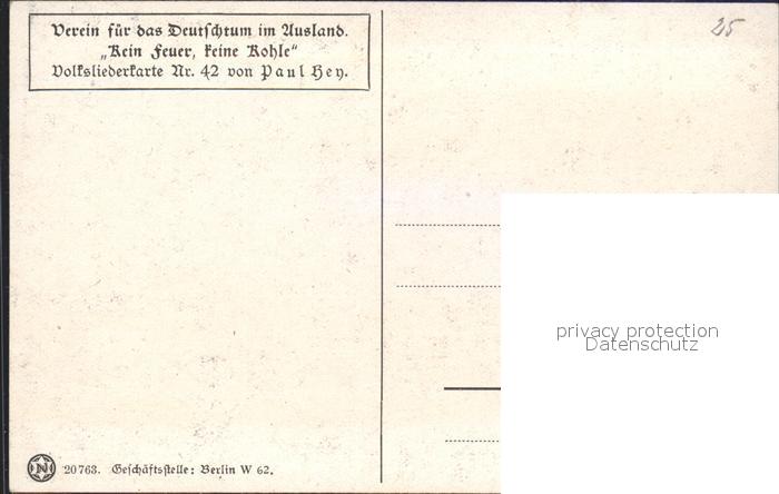 Hey Paul Nr. 42 Volksliederkarte Kein Feuer keine Kohle postalisch nicht gelaufen Erhaltung siehe scans