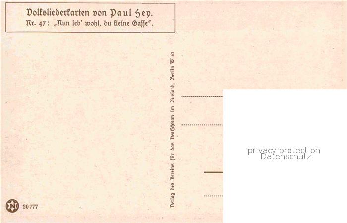 42735595 Hey Paul Nr. 47 Volksliederkarte Nun leb wohl du kleine Gasse KatCode 22240000001900
