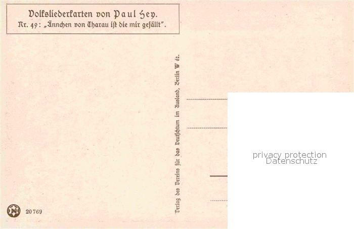 Hey Paul Nr. 49 Volksliederkarte Annchen von Tharau ist die mir gefaellt postalisch nicht gelaufen Erhaltung siehe scans [PaolaD17]