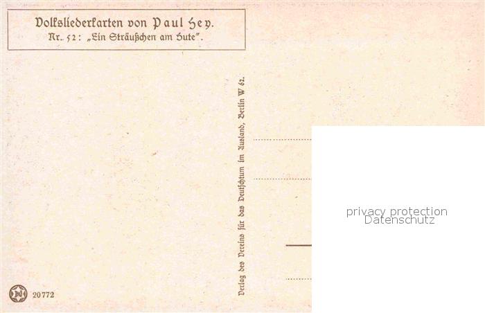 42735599 Hey Paul Nr. 52 Volksliederkarte Ein Sträusschen am Hute KatCode 22240000001900