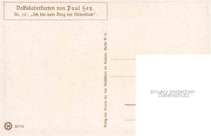 Hey Paul Nr. 56 Volksliederkarte Ich bin vom Berg der Hirtenknab postalisch nicht gelaufen Erhaltung siehe scans [PaolaD17]