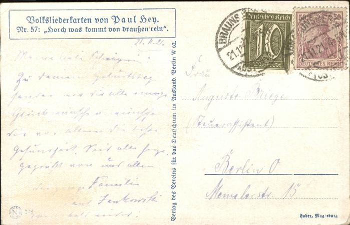 11373186 Hey Paul Nr. 57 Volksliederkarte Horch was kommt von draussen rein KatCode 22240000001900