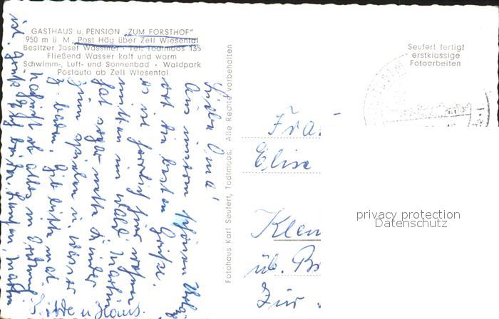 71900745 alte Postkarte H?g Zell Gasthof Pension Zum Forsthof postalisch gelaufen Erhaltung siehe scans KatCode: 11110008336103