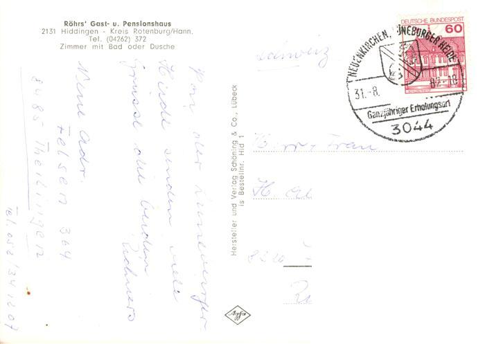 73872194 alte Postkarte Hiddingen Visselhoevede Roehrs Gast und Pensionshaus postalisch gelaufen Erhaltung siehe scans [WerneD78] KatCode: 11110003357051