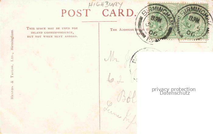 74090051 old postcard Highbury Islington LONDON UK Mr Chamberlains Residence postalisch gelaufen Erhaltung siehe scans [WerneD78] KatCode: 11570UKI1I12AU