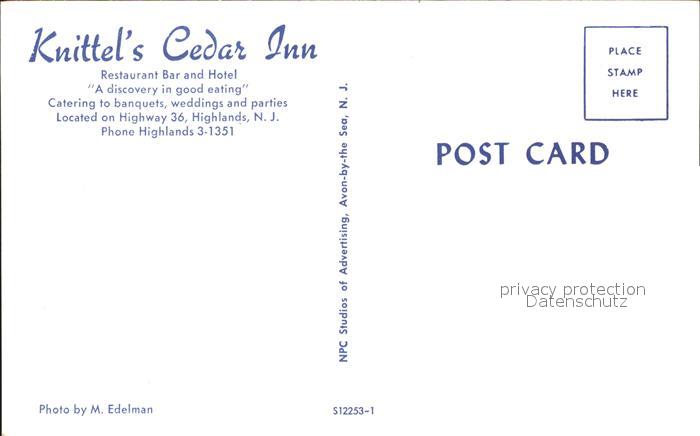 71859320 Highlands New Jersey Knittel Cedar Inn Restaurant Bar Hotel postalisch nicht gelaufen KatCode: 14140320000000