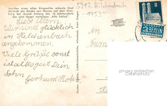 73709600 alte Postkarte Hilchenbach Gillerberg m. Aussichtsturm postalisch gelaufen Erhaltung siehe scans [LiesaD40] KatCode: 11110005970020