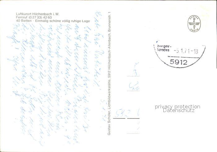 72114520 alte Postkarte Hilchenbach Haus am Sonnenhang Hotel Pension postalisch gelaufen Erhaltung siehe scans KatCode: 11110005970020