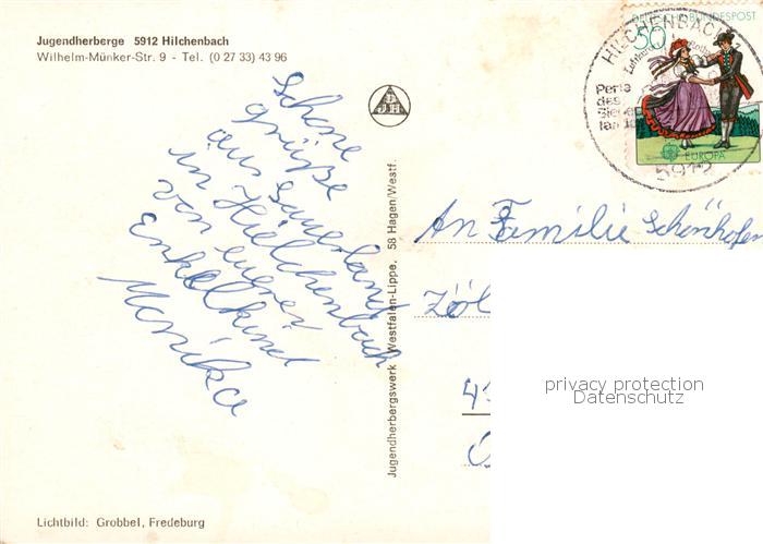 73813039 alte Postkarte Hilchenbach Jugendherberge postalisch gelaufen Erhaltung siehe scans [FriedD77] KatCode: 11110005970020