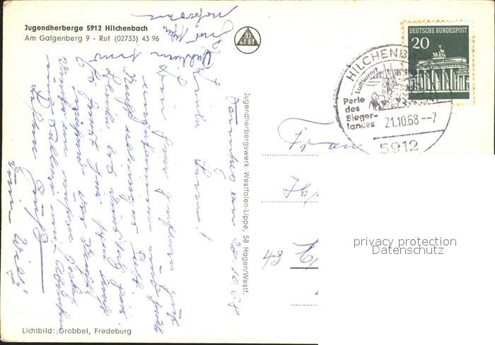 72064922 alte Postkarte Hilchenbach Jugendherberge postalisch gelaufen Erhaltung siehe scans KatCode: 11110005970020