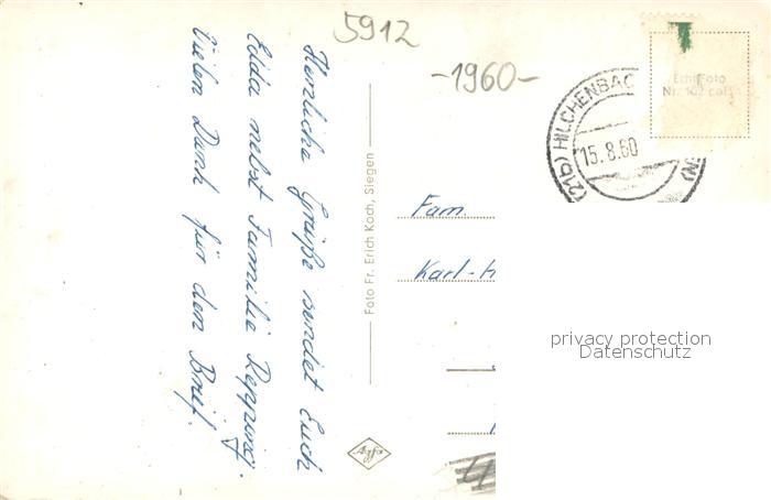 73709601 alte Postkarte Hilchenbach Marktplatz Gesamtansicht von Sueden Breitenbach-Talsperre Blick von Norden postalisch gelaufen Erhaltung siehe scans [LiesaD40] KatCode: 11110005970020