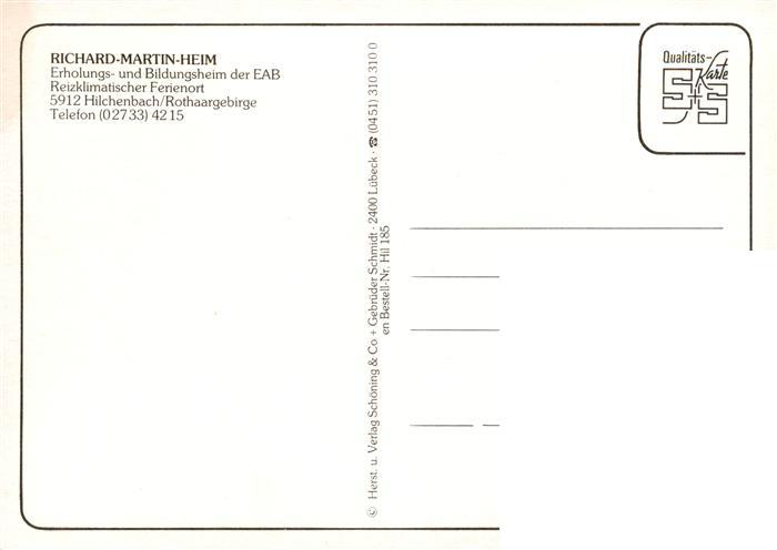 73887743 Hilchenbach Richard Martin Heim postalisch nicht gelaufen Erhaltung siehe scans [WerneD78] KatCode: 11110005970020