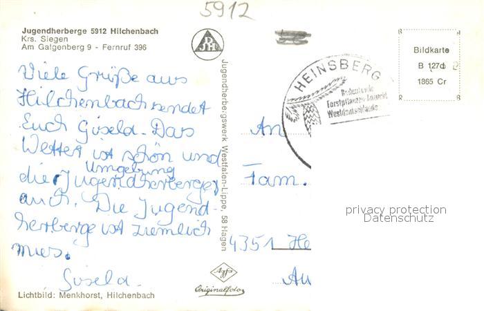 73709594 alte Postkarte Hilchenbach Teilansicht postalisch gelaufen Erhaltung siehe scans [LiesaD40] KatCode: 11110005970020