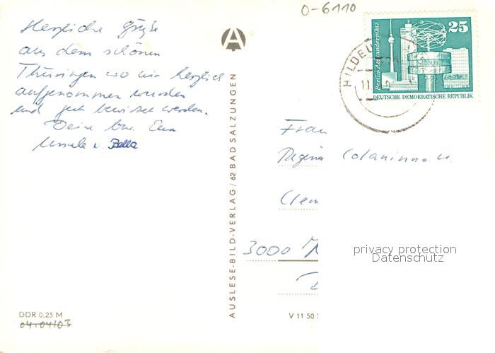 72928165 alte Postkarte Hildburghausen Rathaus Stadttheater Stadtmauer Friedenspark postalisch gelaufen Erhaltung siehe scans [AndreD76] KatCode: 11110016069024