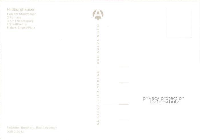 72413956 Hildburghausen Stadtmauer Rathaus Friedenspark Stadttheater Marx Engels Platz postalisch nicht gelaufen Erhaltung siehe scans KatCode: 11110016069024