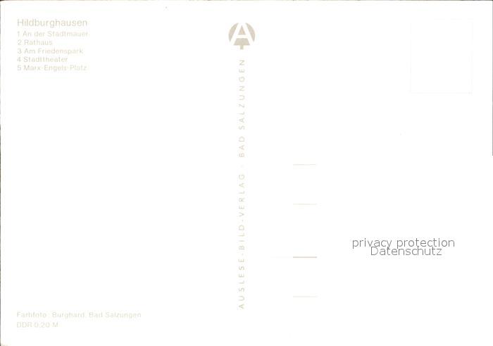 72413952 Hildburghausen Stadtmauer Rathaus Friedenspark Stadttheater marx Engels Platz postalisch nicht gelaufen Erhaltung siehe scans KatCode: 11110016069024