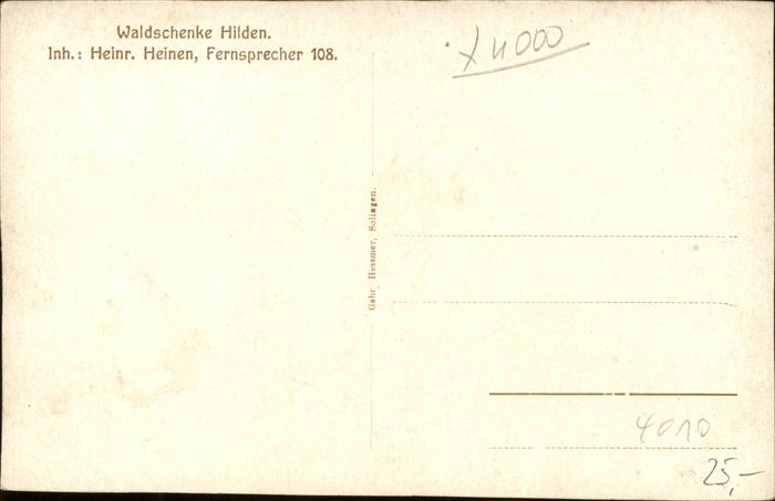 41399256 Hilden Duesseldorf Waldschenke Gaststaette postalisch nicht gelaufen KatCode: 11110005111000