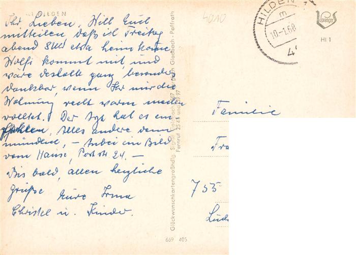 73943135 Hilden Mettmann Erloeserkirche Hochhaus Kirche Wohnsiedlung Kirche Rathaus postalisch gelaufen Erhaltung siehe scans [FriedD77] alte Postkarte Frie Katcode 11110005158016