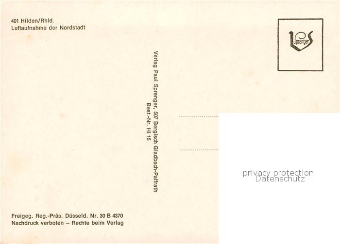 73849636 Hilden Mettmann Fliegeraufnahme Nordstadt postalisch nicht gelaufen Erhaltung siehe scans [WerneD78] Wern Katcode 11110005158016