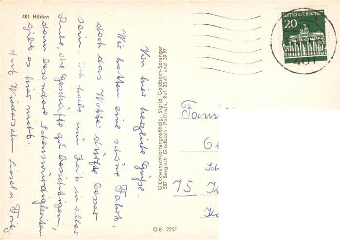 73943119 Hilden Mettmann Hochhaus Goldenteich Sparkasse Waldschenke Kastanienweg postalisch gelaufen Erhaltung siehe scans [FriedD77] alte Postkarte Frie Katcode 11110005158016