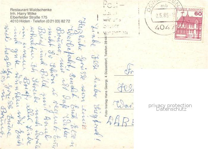 73055745 alte Postkarte Hilden Mettmann Restaurant Waldschenke postalisch gelaufen Erhaltung siehe scans [NatalD47] KatCode: 11110005158016