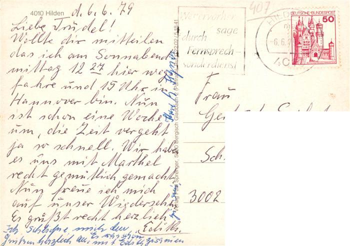 73906484 Hilden Mettmann Stadtwaldteich Fontaene Waldbad Nordstadt Friedenskirche Holterhoefchen Landesverwaltungsschule postalisch gelaufen Erhaltung siehe scans [FriedD77] alte Postkarte Frie Katcode 11110005158016