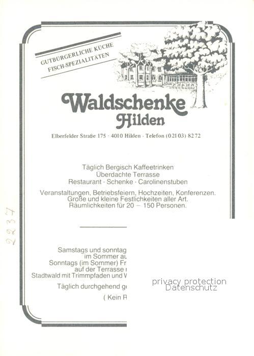 73542284 Hilden Mettmann Waldschenke postalisch nicht gelaufen Werbekarte (keine Postkarte) Erhaltung siehe scans [KathaD81] KatCode: 11110005158016