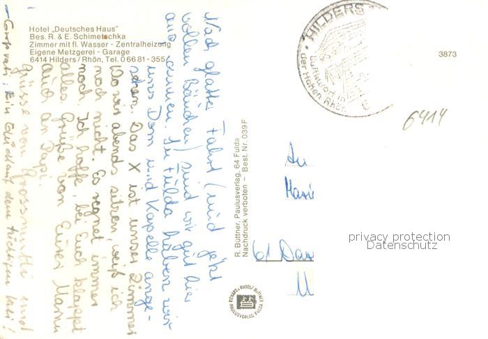 73755876 alte Postkarte Hilders Rhoen Hotel Deutsches Haus Gastraeume Speisesaal postalisch gelaufen Erhaltung siehe scans [FriedD77] KatCode: 11110006631012