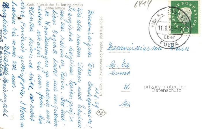 43350350 alte Postkarte Hilders Rhoen Katholische Pfarrkirche St Bartholomaeus Innenansicht Altar Kanzel postalisch gelaufen Erhaltung siehe scans [FriedD77] KatCode: 11110006631012