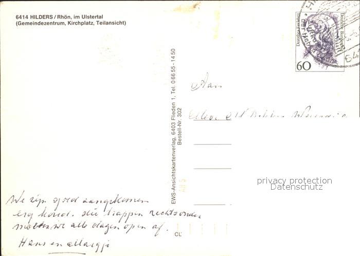 72394547 alte Postkarte Hilders Rhoen Luftkurort im Ulstertal Gemeindezentrum Kirchplatz postalisch gelaufen Erhaltung siehe scans KatCode: 11110006631012