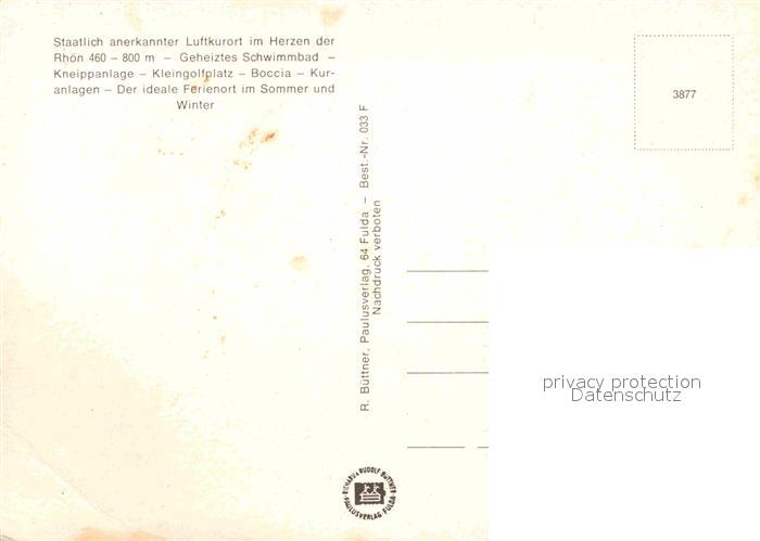 72875737 Hilders Rhoen Panorama Luftkurort Freibad Kuranlagen Wappen postalisch nicht gelaufen Erhaltung siehe scans [FriedD77] KatCode: 11110006631012