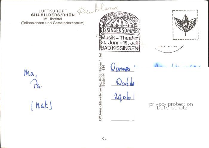 72254147 alte Postkarte Hilders Rhoen Panorama Ulstertal Freibad Gemeindezentrum Luftkurort postalisch gelaufen Erhaltung siehe scans KatCode: 11110006631012