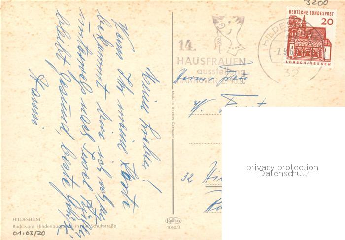 73059244 alte Postkarte Hildesheim Blick vom Hindenburgplatz in die Schuhstrasse postalisch gelaufen Erhaltung siehe scans [WerneD78] KatCode: 11110003254021
