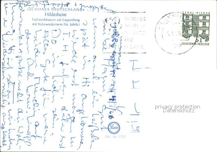 72227752 alte Postkarte HILDESHEIM CITY Fachwerkhaeuser am Lappenberg Kehrwiederturm postalisch gelaufen Erhaltung siehe scans KatCode: 11110003254021