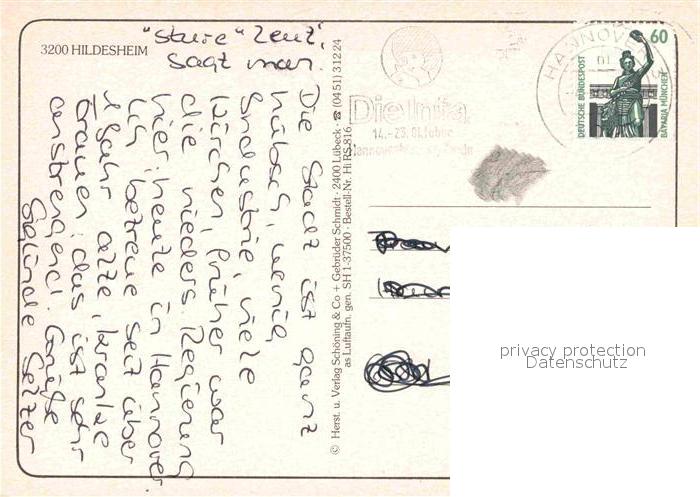 72888966 alte Postkarte HILDESHEIM CITY Fliegeraufnahme postalisch gelaufen Erhaltung siehe scans [AndreD76] KatCode: 11110003254021