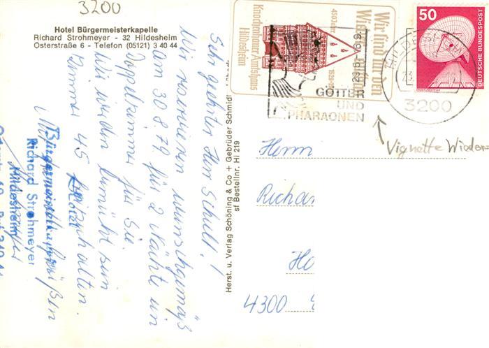 73912421 HILDESHEIM CITY Hotel Buergermeisterkapelle postalisch gelaufen Erhaltung siehe scans [FriedD77] alte Postkarte Frie Katcode 11110003254021
