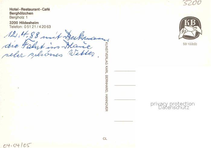 72912254 HILDESHEIM CITY Hotel Restaurant Cafe Berghoelzchen postalisch nicht gelaufen Erhaltung siehe scans [FriedD77] KatCode: 11110003254021