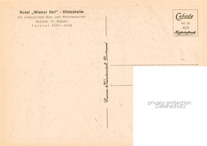73866581 HILDESHEIM CITY Hotel Wiener Hof postalisch nicht gelaufen Erhaltung siehe scans [WerneD78] Wern Katcode 11110003254021