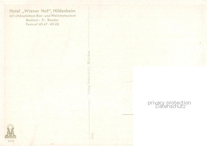 73862697 HILDESHEIM CITY Hotel Wiener Hof Weinrestaurant postalisch gelaufen Erhaltung siehe scans [WerneD78] alte Postkarte Wern Katcode 11110003254021