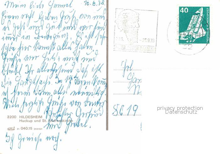 72741844 alte Postkarte HILDESHEIM CITY Huckup und St Andreaskirche postalisch gelaufen Erhaltung siehe scans [WerneD78] KatCode: 11110003254021