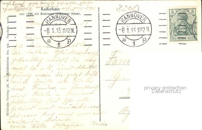72291708 alte Postkarte HILDESHEIM CITY Kaiserhaus Historisches Gebaeude Figuren Fassade postalisch gelaufen Erhaltung siehe scans KatCode: 11110003254021