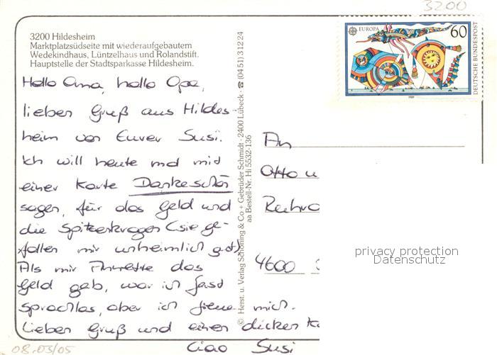 72939260 HILDESHEIM CITY Marktplatz Wedekindhaus Luentzelhaus Rolandstift Stadtsparkasse postalisch nicht gelaufen Erhaltung siehe scans [PaolaD17] KatCode: 11110003254021