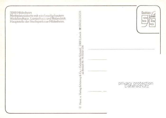 72958320 HILDESHEIM CITY Marktplatz Wedekindhaus Luentzelhaus Rolandstift Stadtsparkasse Historische Gebaeude postalisch nicht gelaufen Erhaltung siehe scans [FriedD77] KatCode: 11110003254021